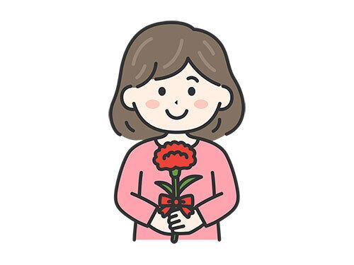 カーネーションを持った、女性のバストアップ(線画カラー)のイラスト