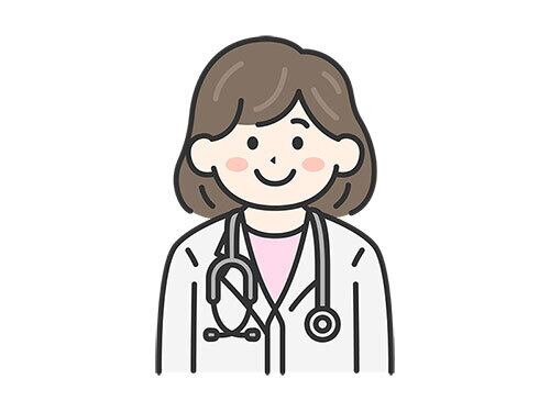 白衣を着て聴診器をつけた、女性医師(線画カラー)のイラスト
