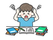 テスト前日|試験勉強に追われて頭を抱える、男性のイラスト