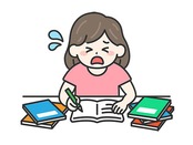 テスト前日|焦りながら試験勉強する、女性のイラスト