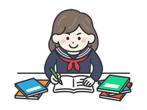 受験勉強|やる気を出して試験勉強する、学生服を着た女性のイラスト