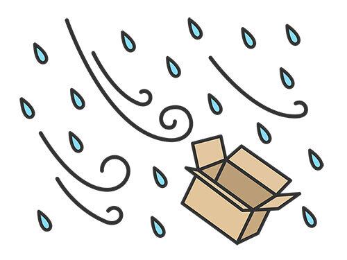 暴風で飛ばされる、段ボールのイラスト|強風・大雨・台風の日|
