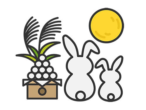 お月見をしている、うさぎの親子(線画カラー)のイラスト