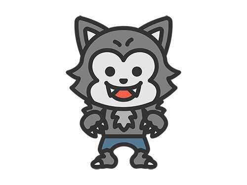 狼男のキャラクターのアイコン(線画カラー)のイラスト