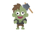 斧が刺さった、ゾンビのキャラクターのアイコンのイラスト