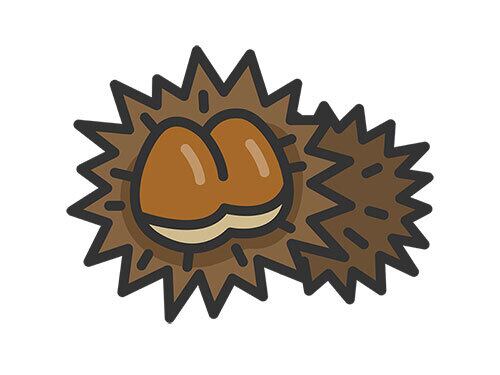 殻に包まれた、栗のアイコン(線画カラー)のイラスト