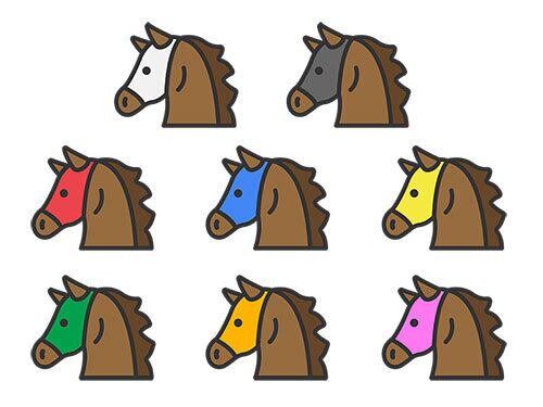 色別の、競走馬の横顔のアイコン(線画カラー)のイラスト