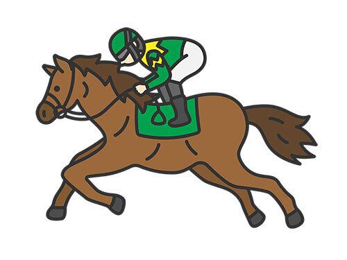 横から見た、走っている競走馬(線画カラー)のイラスト