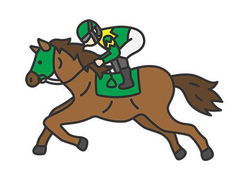 横から見た、走っている、マスクをした競走馬(線画カラー)のイラスト