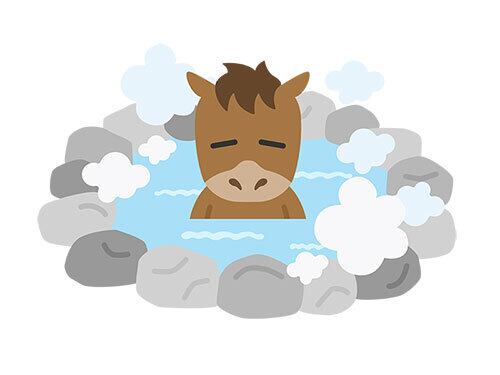 露天風呂の温泉に入る、馬のキャラクターのイラスト|午年