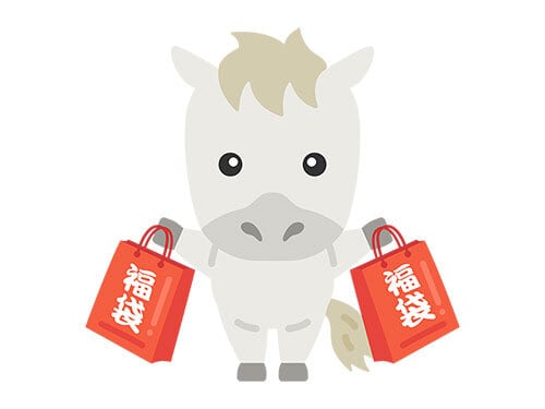 福袋を買う、白馬のキャラクターのイラスト|午年