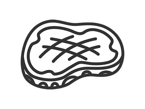 焼いた、牛ステーキ肉のアイコン(線画)のイラスト