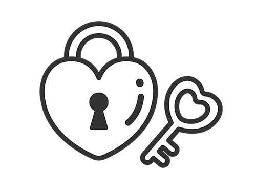 ハート型の南京錠と鍵のアイコン(線画)のイラスト