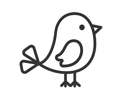右を向いた、小鳥のアイコン(線画)のイラスト