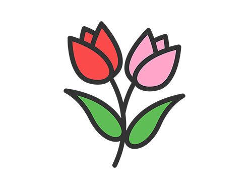 二輪のチューリップの花のアイコン(線画カラー)のイラスト