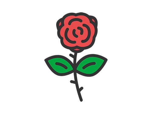 一輪の薔薇の花のアイコン(線画カラー)のイラスト