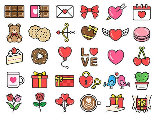 バレンタインデーアイコン(線画カラー)のスペシャルイラストセット