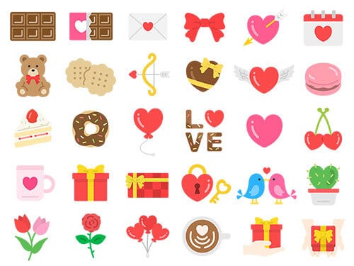バレンタインデーアイコンのスペシャルイラストセット