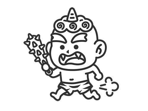 金棒を持って、追いかける青鬼(線画)のイラスト