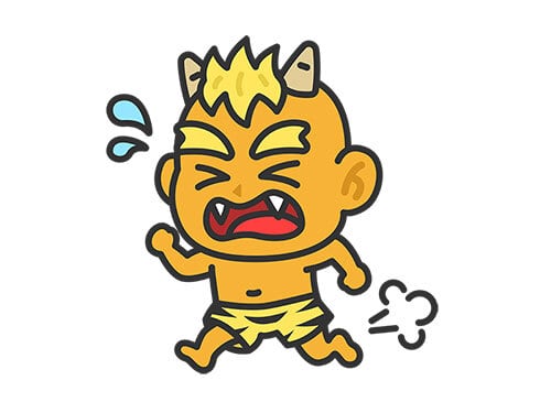 走って逃げる、黄鬼(線画カラー)のイラスト