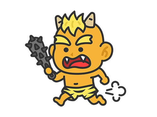 金棒を持って、追いかける黄鬼(線画カラー)のイラスト