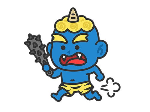 金棒を持って、追いかける青鬼(線画カラー)のイラスト