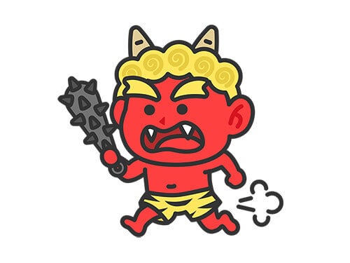 金棒を持って、追いかける赤鬼(線画カラー)のイラスト