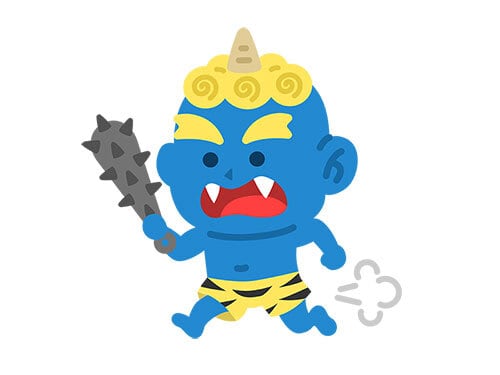 金棒を持って、追いかける青鬼のイラスト