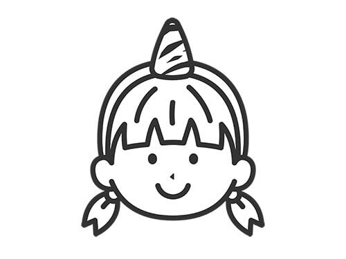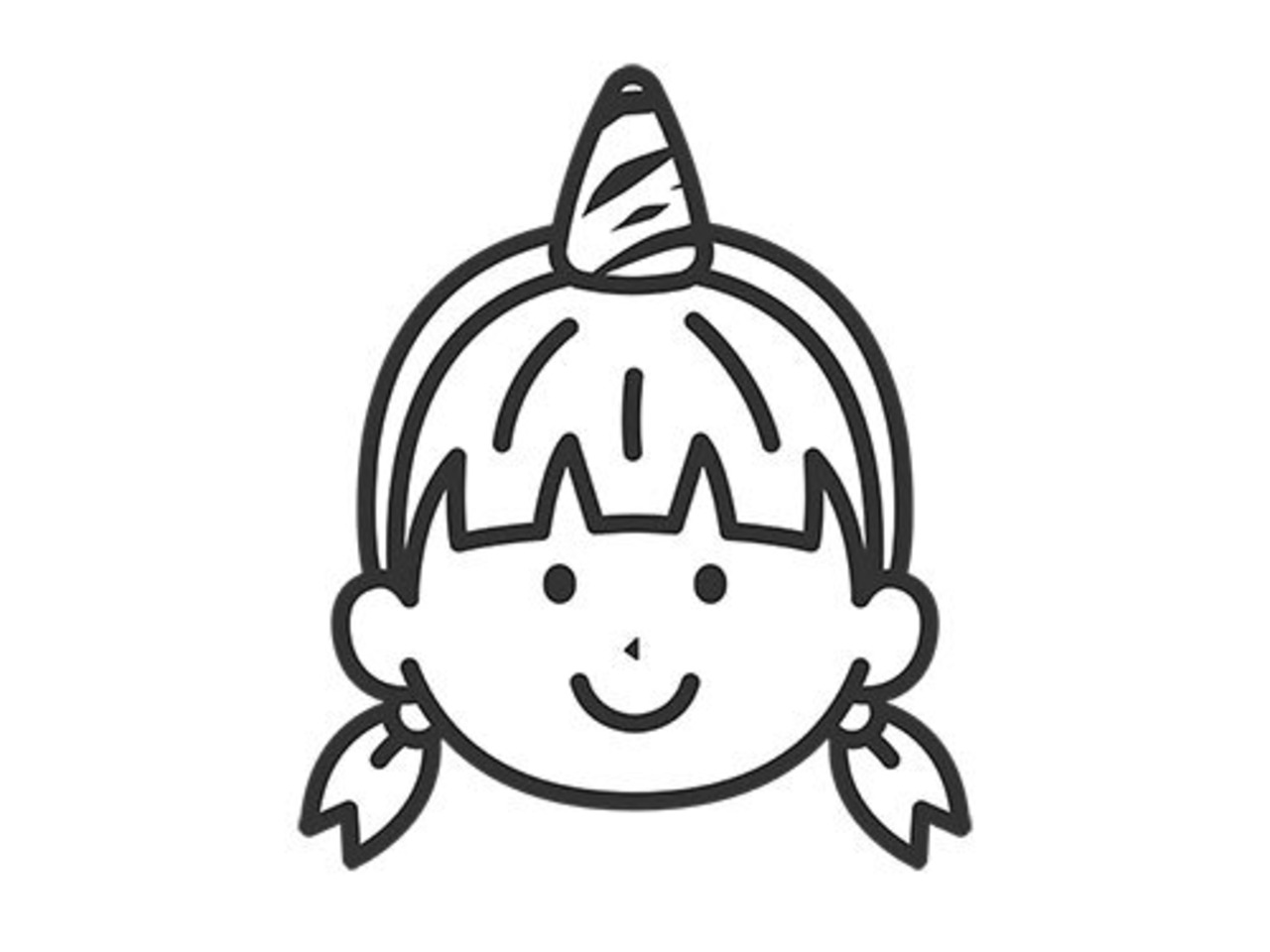 1本角の鬼のカチューシャをつけた、女の子のアイコン(線画)のイラスト