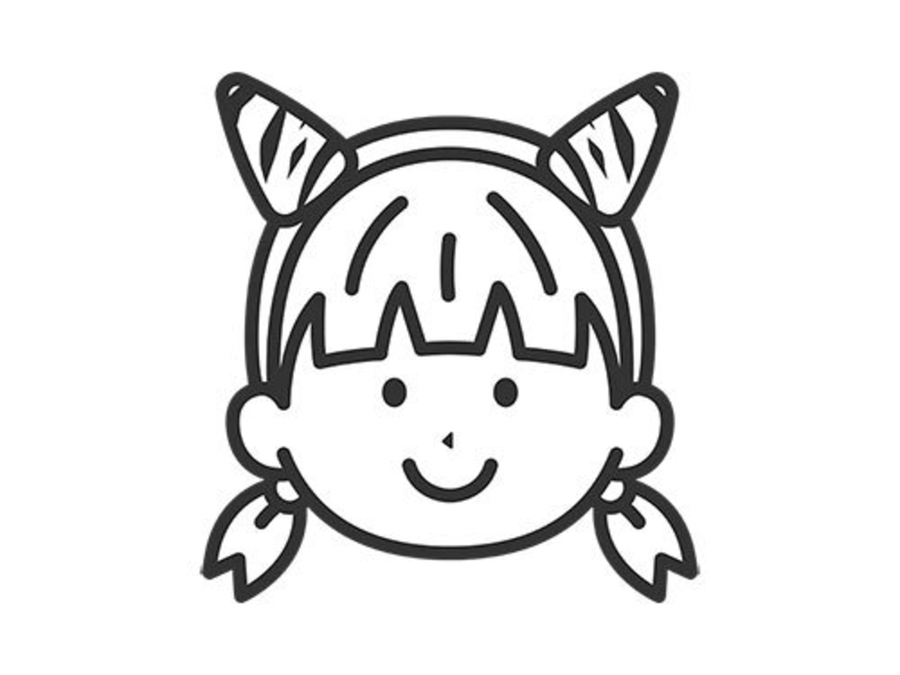 2本角の鬼のカチューシャをつけた、女の子のアイコン(線画)のイラスト