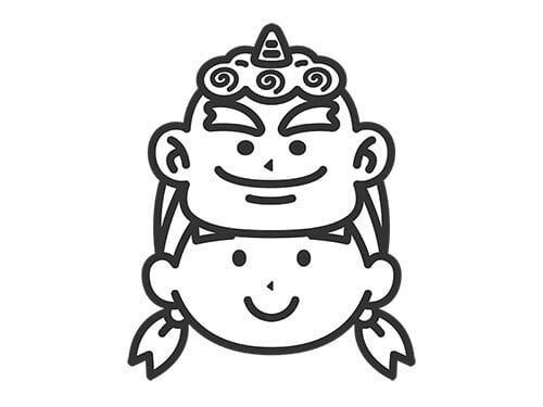 青鬼のお面をつけた、女の子のアイコン(線画)のイラスト
