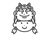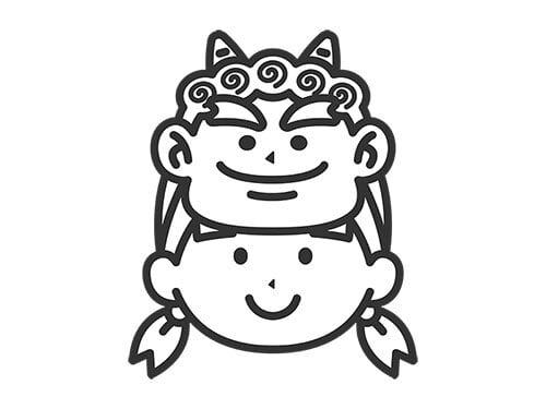 赤鬼のお面をつけた、女の子のアイコン(線画)のイラスト