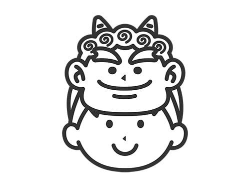 赤鬼のお面をつけた、男の子のアイコン(線画)のイラスト