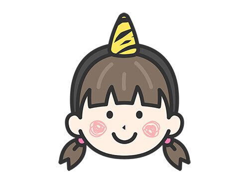 1本角の鬼のカチューシャをつけた、女の子のアイコン(線画カラー)のイラスト