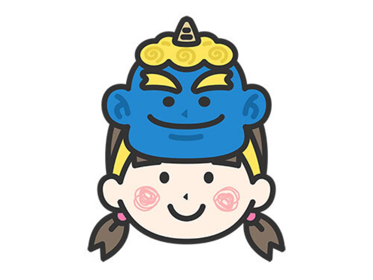 青鬼のお面をつけた、女の子のアイコン(線画カラー)のイラスト