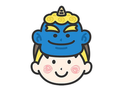 青鬼のお面をつけた、男の子のアイコン(線画カラー)のイラスト