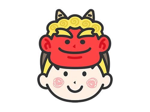 青鬼のお面をつけた、男の子のアイコン(線画カラー)のイラスト