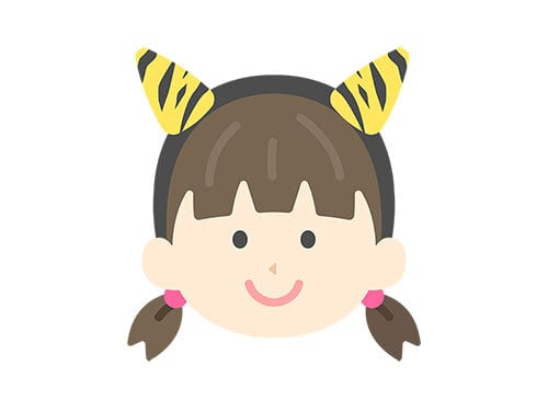 2本角の鬼のカチューシャをつけた、女の子のアイコンのイラスト