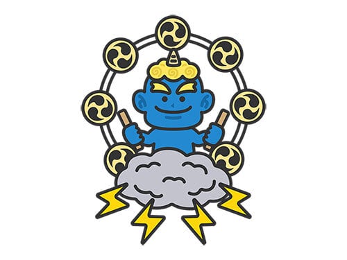 青鬼の雷様のアイコン(線画カラー)のイラスト