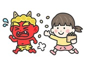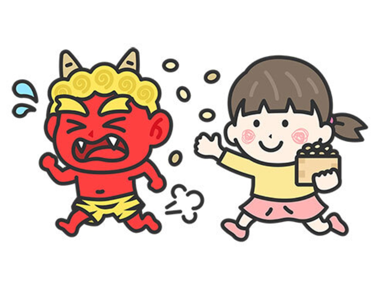 赤鬼を対峙する、女の子のアイコン(線画カラー)のイラスト