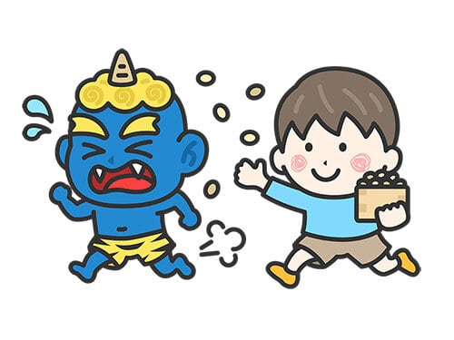 青鬼を対峙する、男の子のアイコン(線画カラー)のイラスト