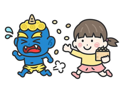 青鬼を対峙する、女の子のアイコン(線画カラー)のイラスト