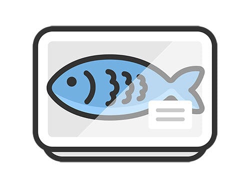 スーパーのパックに入った、魚のアイコン(線画カラー)のイラスト