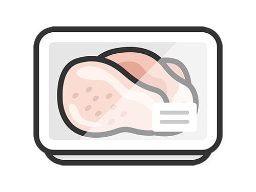 スーパーのパックに入った、鶏モモ肉のアイコン(線画カラー)のイラスト