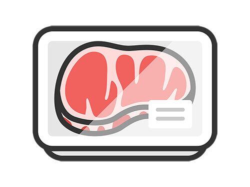 スーパーのパックに入った、ステーキ肉のアイコン(線画カラー)のイラスト