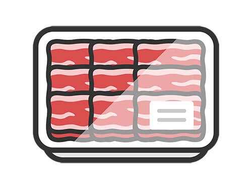 スーパーのパックに入った、牛ばら肉のアイコン(線画カラー)のイラスト