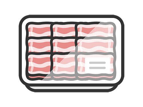 スーパーのパックに入った、豚バラ肉のアイコン(線画カラー)のイラスト