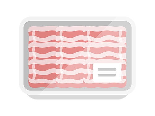 スーパーのパックに入った、豚バラ肉のアイコンのイラスト