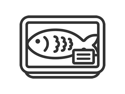 スーパーのパックに入った、魚のアイコン(線画)のイラスト