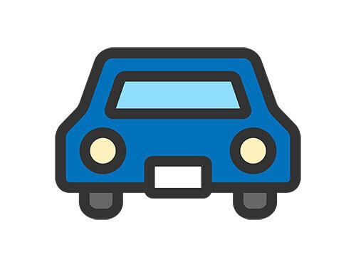 正面から見た、自動車アイコン(線画カラー)のイラスト